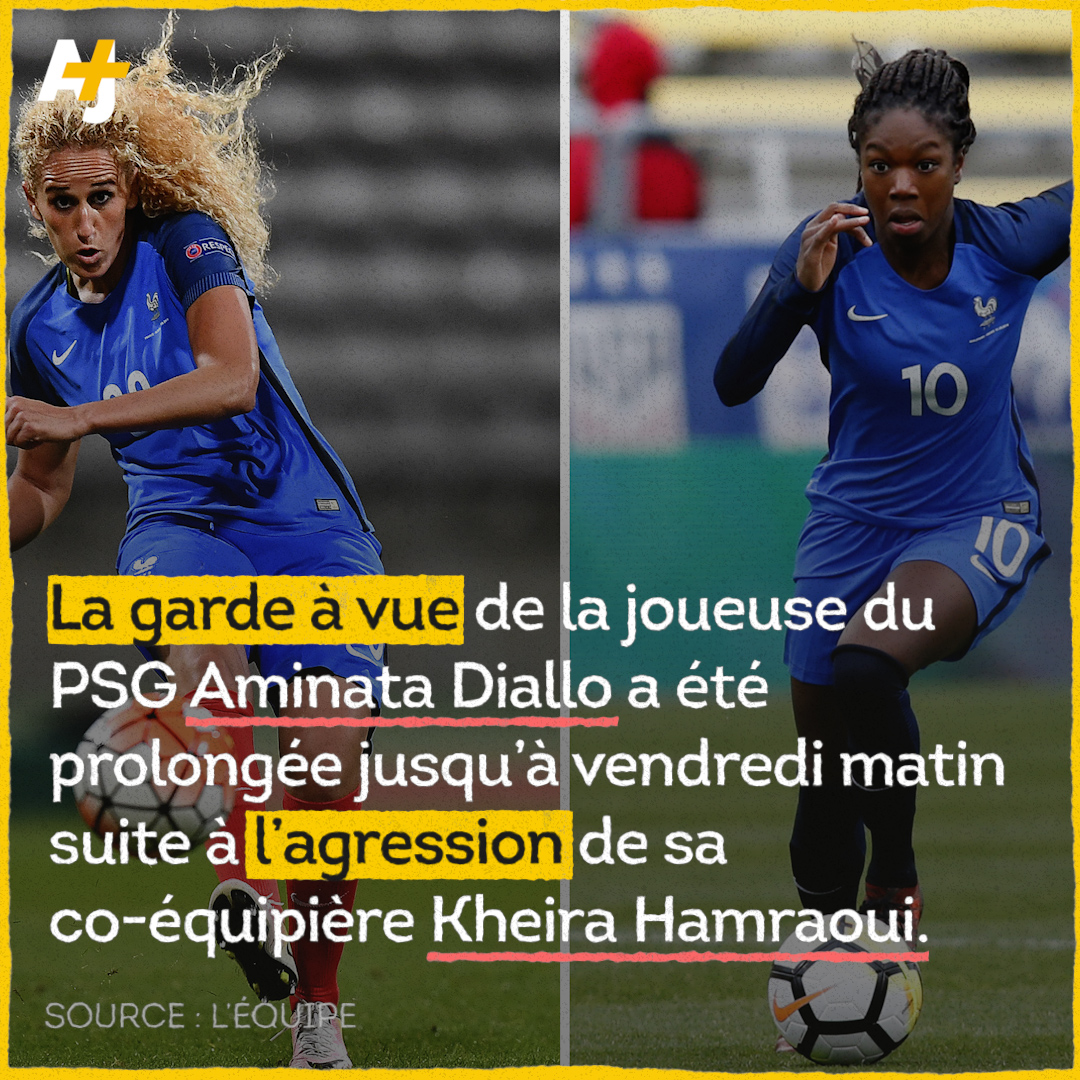 La futbolista del París Saint-Germain PSG Aminata Diallo fue detenida este miércoles por agentes de la Policía Judicial por su presunta conexión con una violenta agresión contra su compañera Kheira HamrauiHamraui fue agredida en la noche del pasado jueves por dos hombres enmascarados que le golpearon las piernas. Paris Saint-Germain have confirmed that midfielder Aminata Diallo was taken into police custody on Wednesday morning following an attack on the clubs players last week.